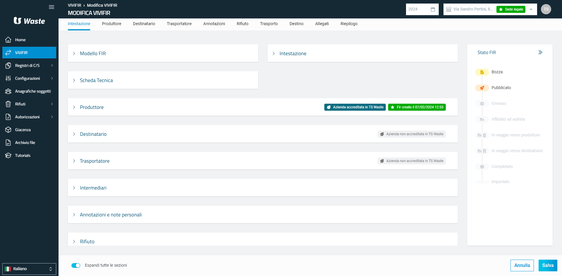 TeamSystem Waste è il software per la gestione amministrativa dei rifiuti destinato a imprese, produttori, intermediari, trasportatori e consulenti nella filiera ambientale. Include un App mobile per i trasportatori per gestire il FIR: dalla presa in carico ed ETA del viaggio, al completamento in impianto e lettura di QR Code.