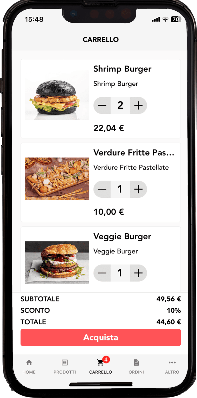 - Promozioni e sconti: aumenta le vendite mostrando offerte e promozioni direttamente nell'App.