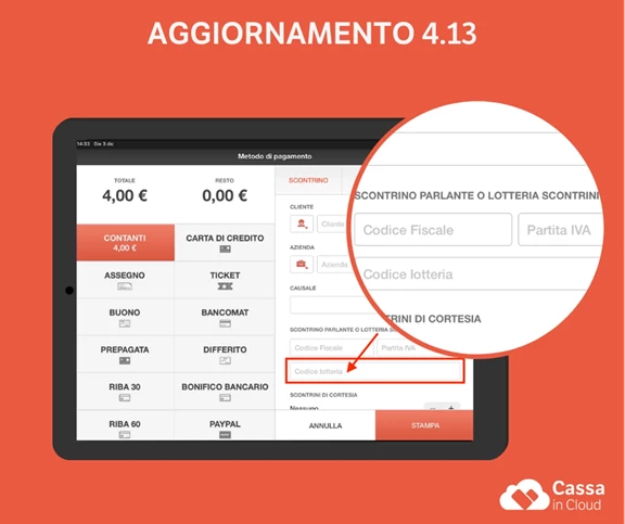 Con l’aggiornamento 4.13, previsto per martedì 15 dicembre, sarà possibile gestire il Codice Lotteria.