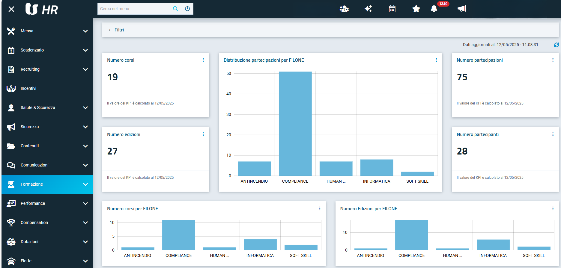 Permette la gestione e la rendicontazione della formazione H&S attraverso il calcolo delle esigenze formative legate alla sicurezza sul lavoro, la gestione dello scadenzario, la convocazione ai corsi periodici obbligatori e il relativo monitoraggio. Gestisce un catalogo organizzato della formazione obbligatoria e non obbligatoria in materia H&S.