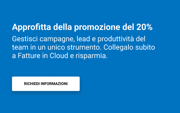 Per te che sei cliente Fatture in Cloud, puoi avere l’integrazione con CRM in Cloud approfittando del 20% di sconto!